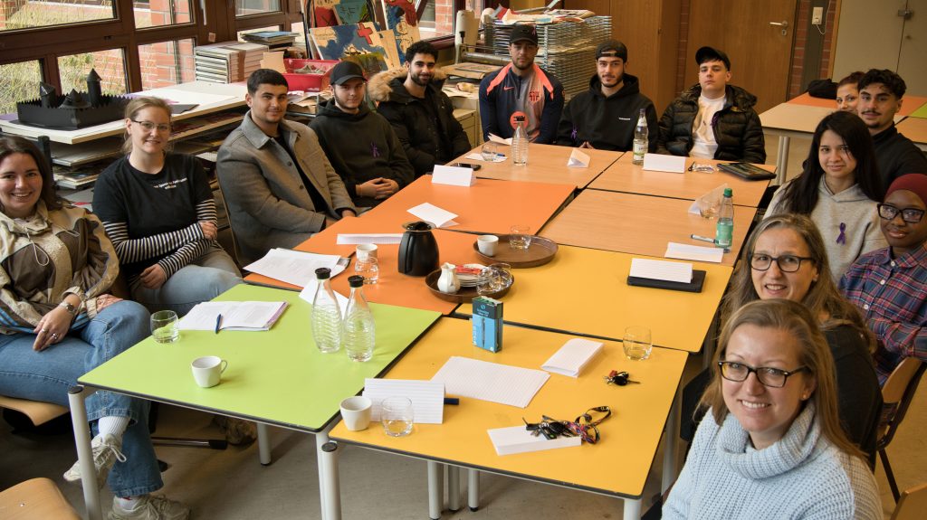 Zwei Mitarbeiter:innen des autonomen Frauenhauses Bremen nahmen die Spenden entgegen. Zuvor berichteten diese über ihre Arbeit und unsere Schüler:innen nutzen diese Zeit, um Nachfragen zu stellen und so mehr über die Bedeutung und Relevanz von Frauenhäusern zu erfahren. Anschließend wurde gemeinsam mit den Schüler:innen beschlossen, wofür die Spenden eingesetzt werden sollen.